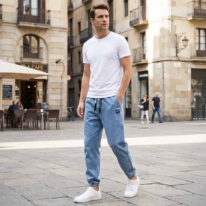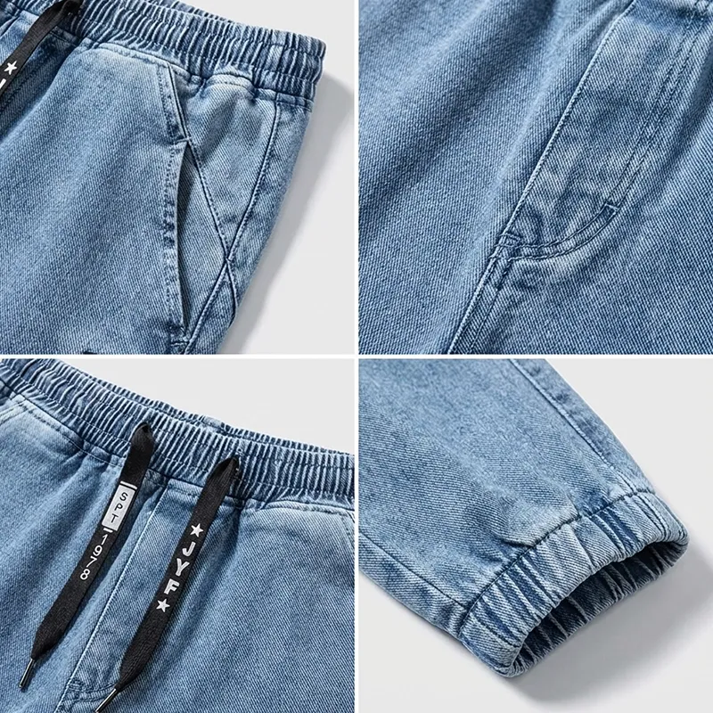 Steven L.Seriously great denim joggers. I play with my kids and they still keep their shape. The soft material makes it even better for all-day wear.
