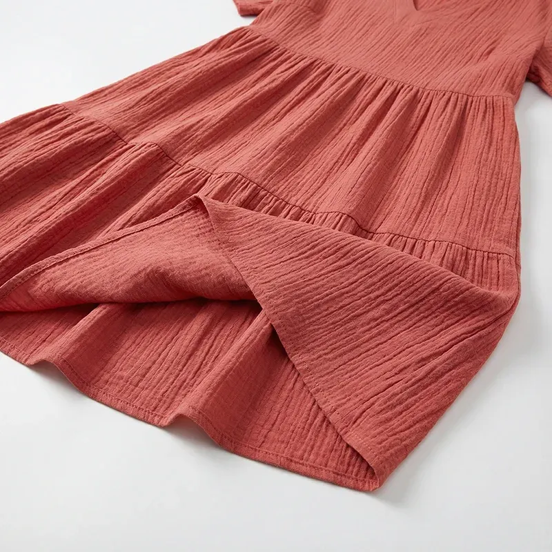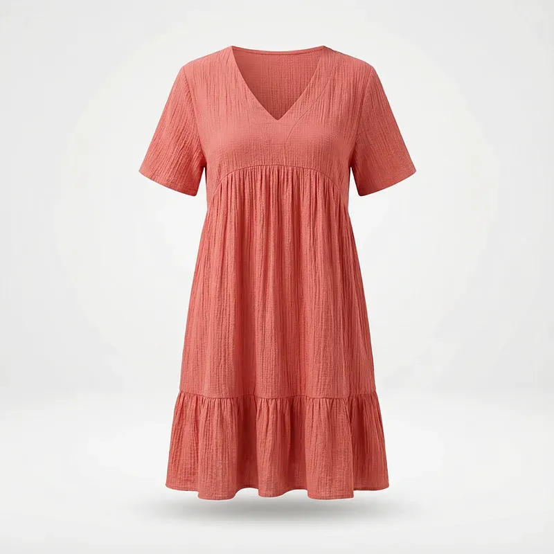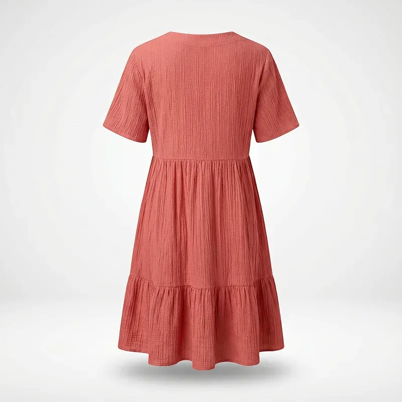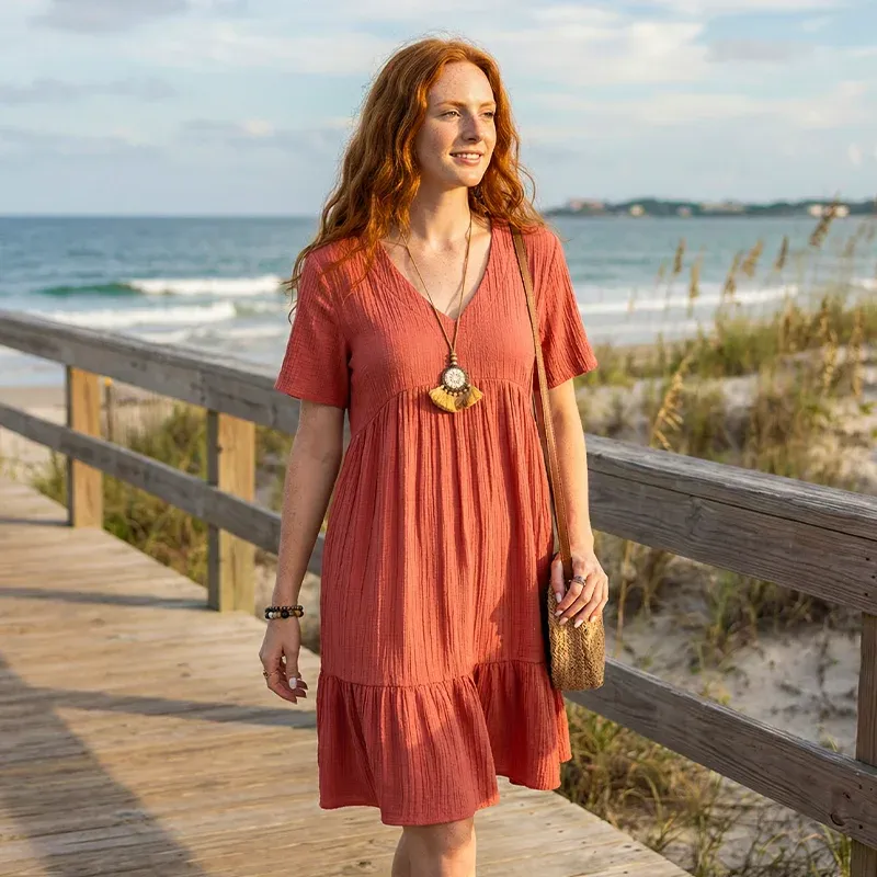 This chic dress will add a touch of nature-inspired beauty to your wardrobe. It is perfect for beach outings, casual gatherings, or relaxed vacations, offering versatility. It allows for easy layering with jackets or cardigans during cooler evenings. The lightweight fabric ensures comfort during warm days, keeping you dry and comfortable. This summer dress features a flattering V-neckline that effortlessly enhances your natural silhouette.