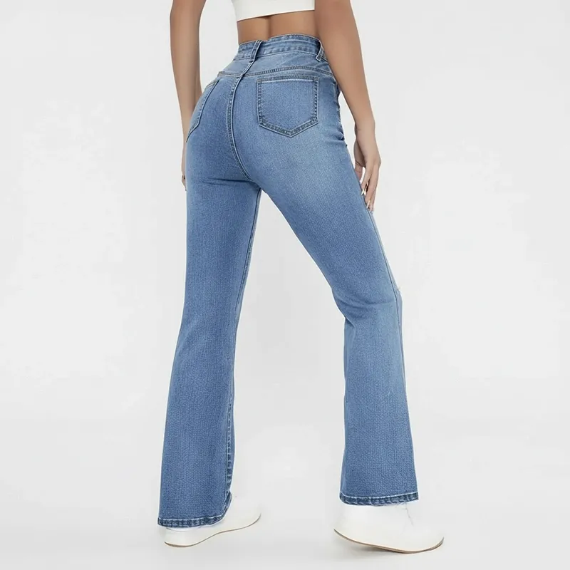 These jeans provide support while flattering the natural body contour. Its soft, breathable material ensures comfort from morning errands to evening outings. Bootcut legs offer mobility and style with every step you take. You can easily combine them with jackets, blouses, or sneakers to create versatile ensembles. Reliable stitching maintains form and appearance even after repeated washing.