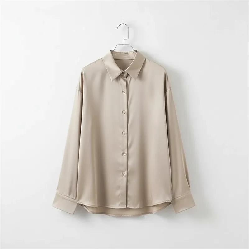 Crafted from soft, lightweight material, this blouse provides smooth texture and all-day comfort. A relaxed silhouette allows for freedom of movement while maintaining a flattering shape. It offers versatile styling options, pairing well with skirts, trousers, or casual jeans. The shirt adds a sophisticated touch to any outfit, suitable for both casual and professional occasions. Long sleeves and subtle cuff details provide elegance while offering protection during cooler weather.