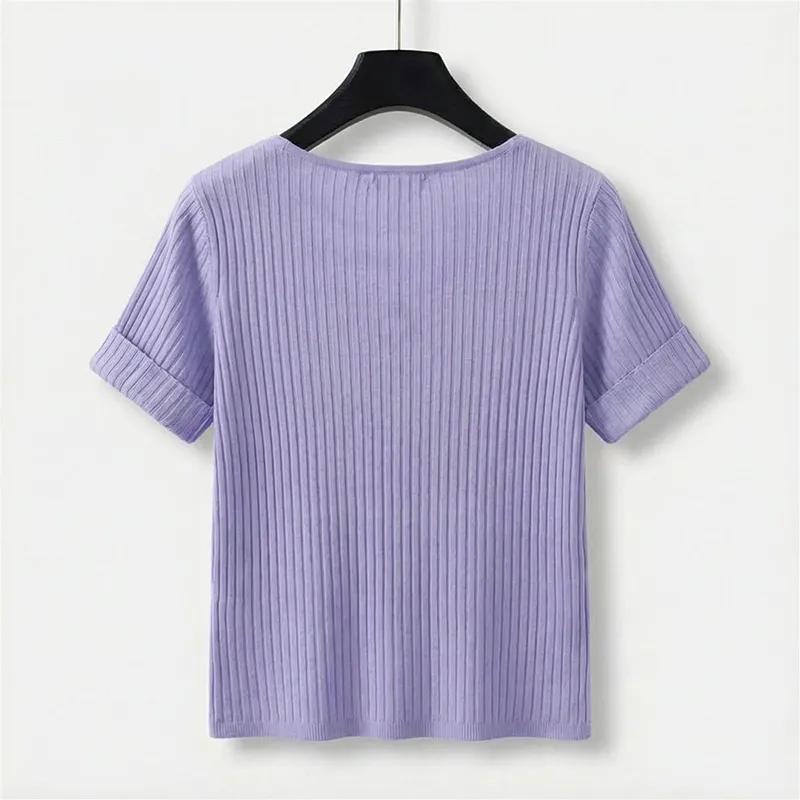 Women’s Knit Shirt Short Sleeve V-Neck Top