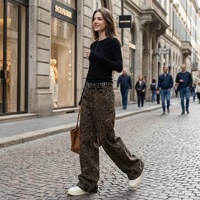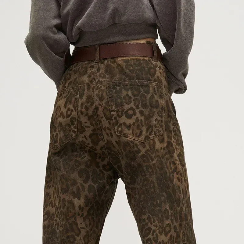 Bold leopard print adds personality, allowing you to express your style effortlessly. These wide-leg jeans offer freedom of movement and comfort, perfect for all-day wear. Premium denim ensures lasting durability while maintaining softness and structure after repeated washes. High-rise waistlines enhance the natural figure, supporting a flattering silhouette. The pants are ideal for brunch, shopping, or evening outings, providing you with numerous stylish options.