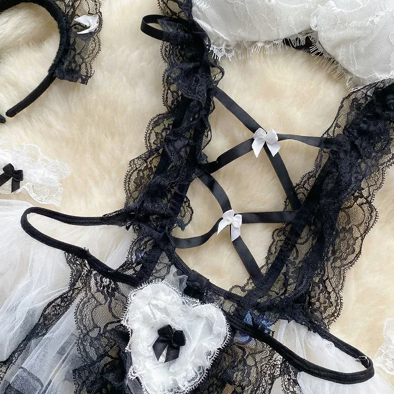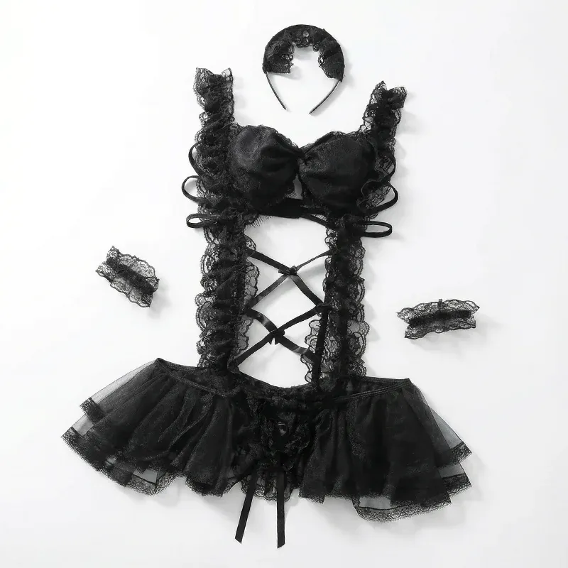 Transform evenings with this charming lace outfit set. Soft material gives comfort during any party or photo shoot. Lovely details and bows create a sweet and unique look. Surprise a partner or make special moments even more exciting.