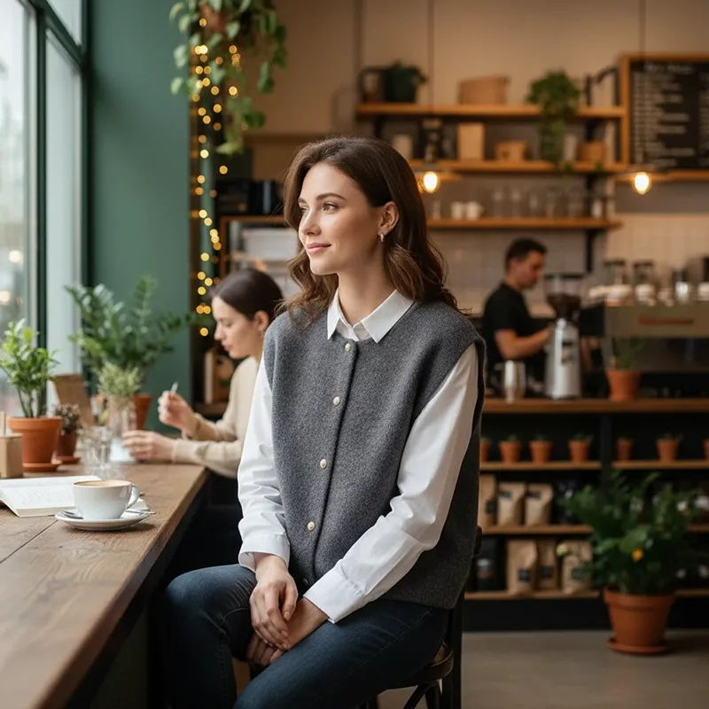 Soft knit fabric ensures lasting comfort and provides soothing warmth. The sleeveless cut highlights chic modern styling suitable for transitional weather. A classic crew neckline complements blouses, shirts, or dresses with sophistication. Neutral tones pair effortlessly with casual or refined outfits for endless versatility. Easy layering provides year-round practicality without compromising elegance.