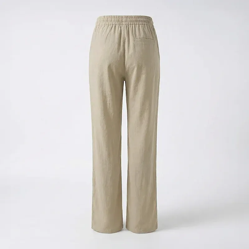 Breathable linen cotton keeps your legs comfy and sweat-free during warm days. Straight-leg design combines casual ease with a polished, refined appearance. It blends seamlessly with a wide range of accessories and footwear options. Soft fabric allows natural movement while maintaining neat drape and fit. Ideal for relaxed gatherings, walks, or coffee dates in the city.